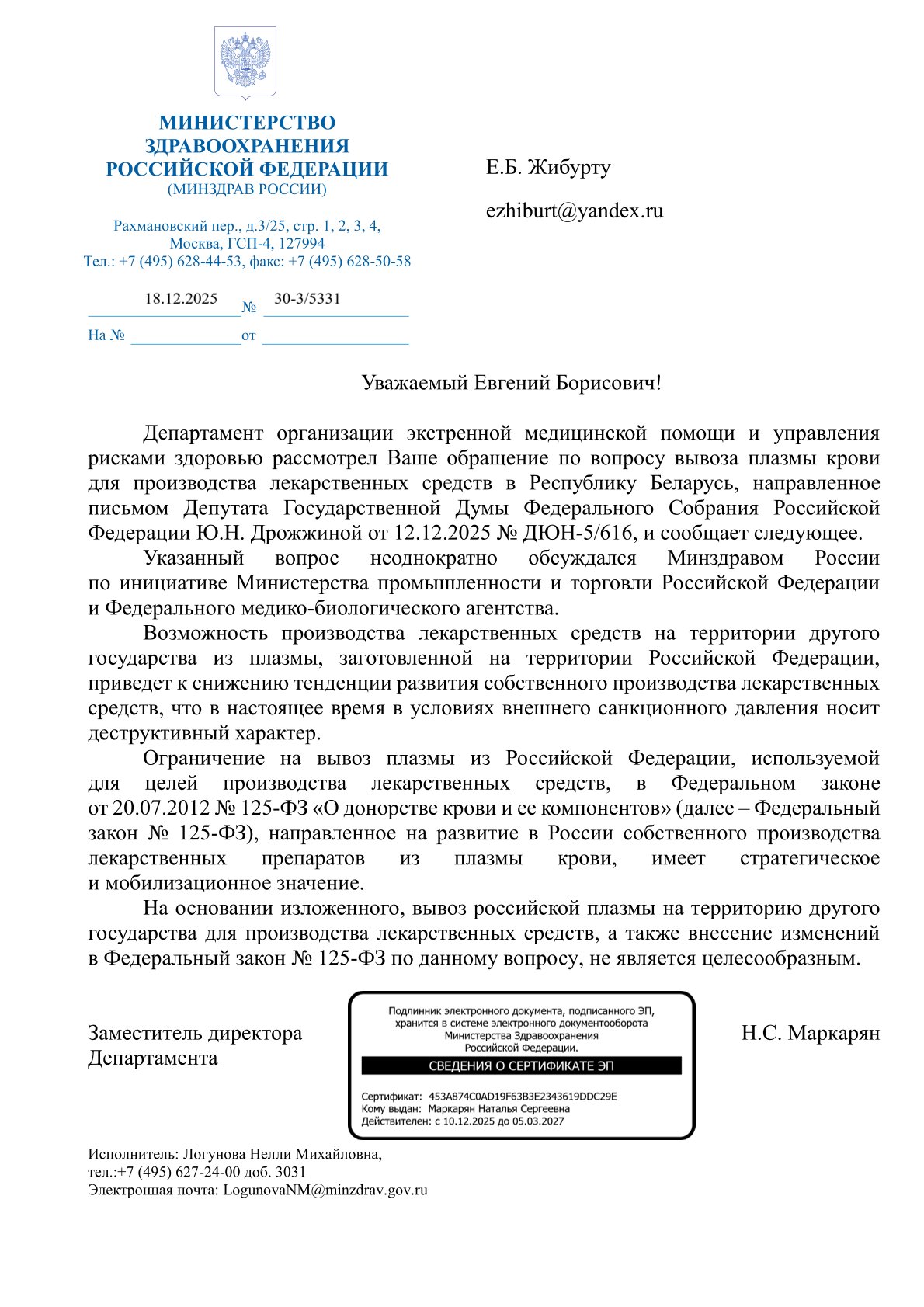 Кажется, что в запрете контрактного фракционирования (даже в Беларуси) отсутствуют